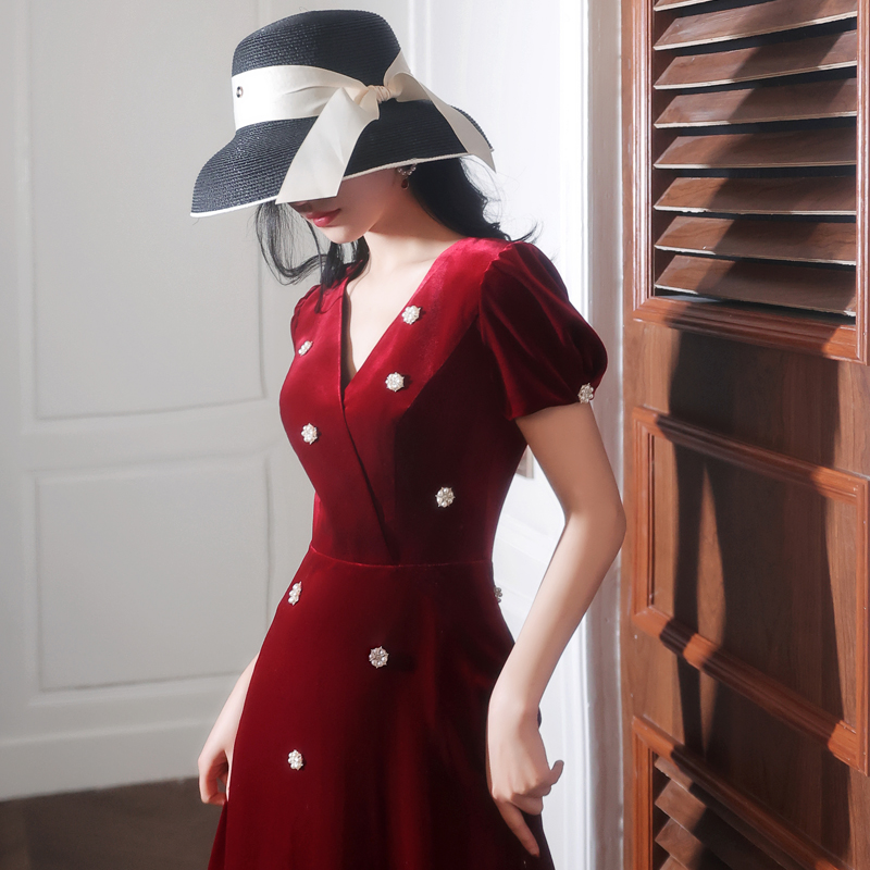 Toast bride red 2022 new wedding velvet wedding evening dress is noble and elegant