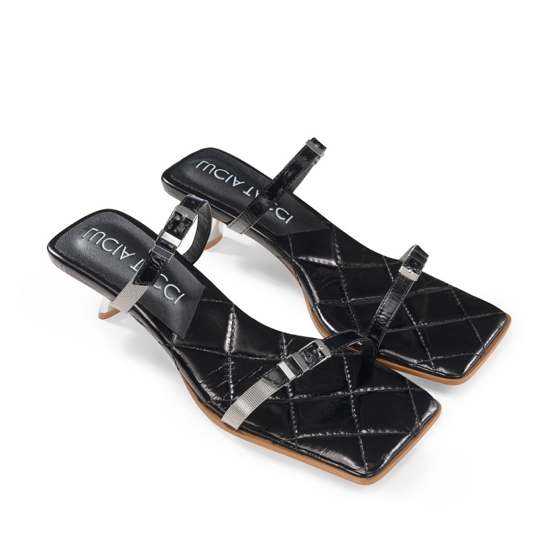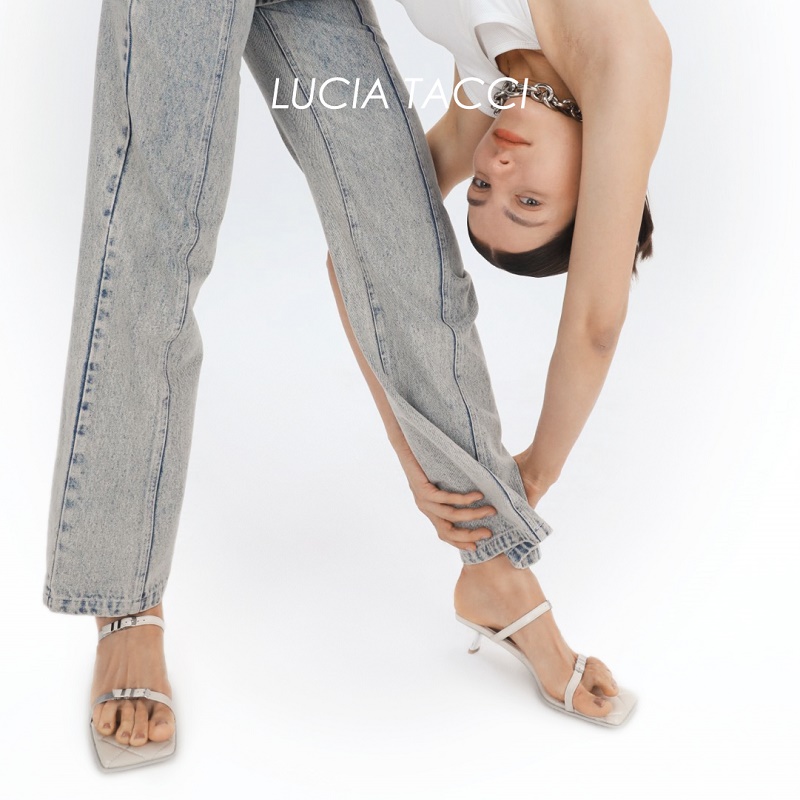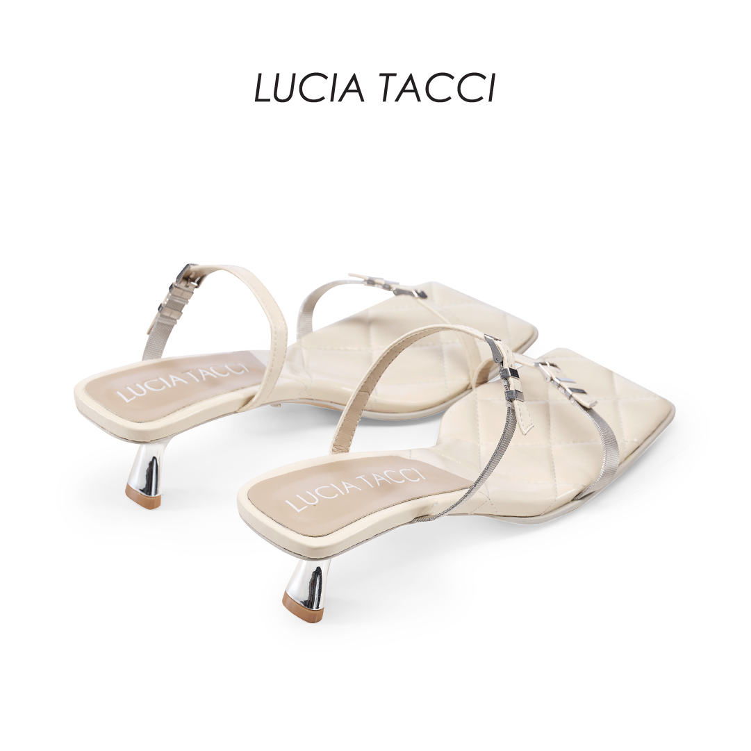 LUCIA TACI Original design cow leather metal decorative square head with cat heel cool and sandal women