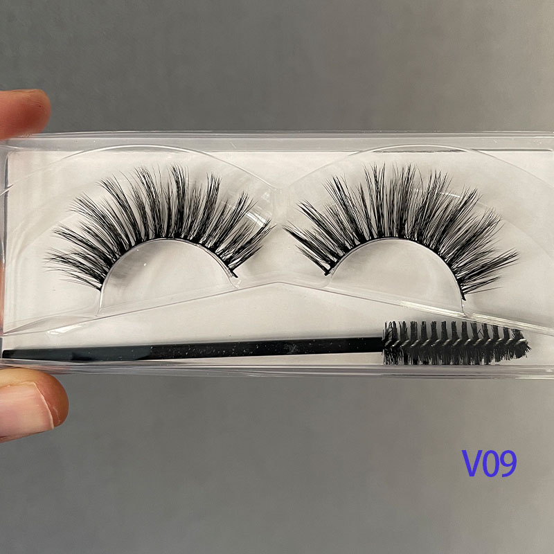 European and American models 3D thick thick roll eyes lengthened black stalk false eyelash imitation ferret V09 single piece without giving glue