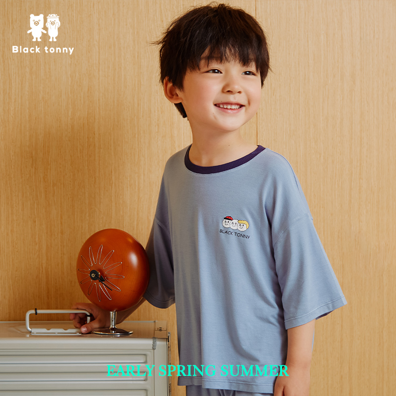 Small Blacktony Nicktatton Boy Model Cotton Air Conditioned Home Short Sleeve Kit Kids Summer Kids