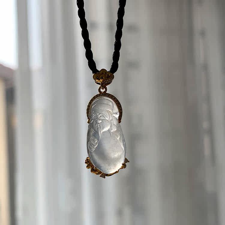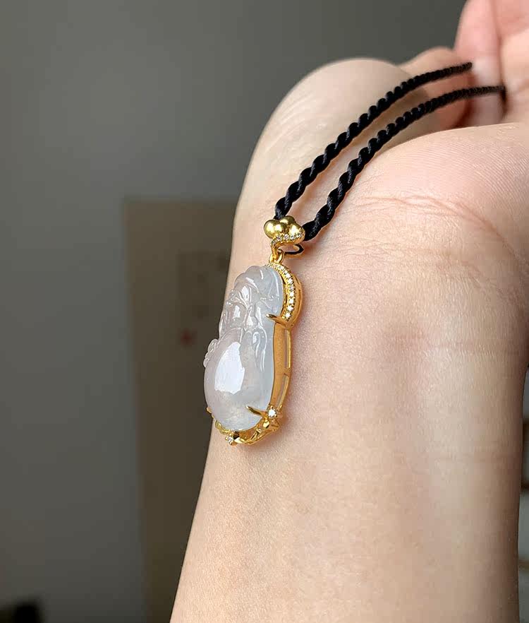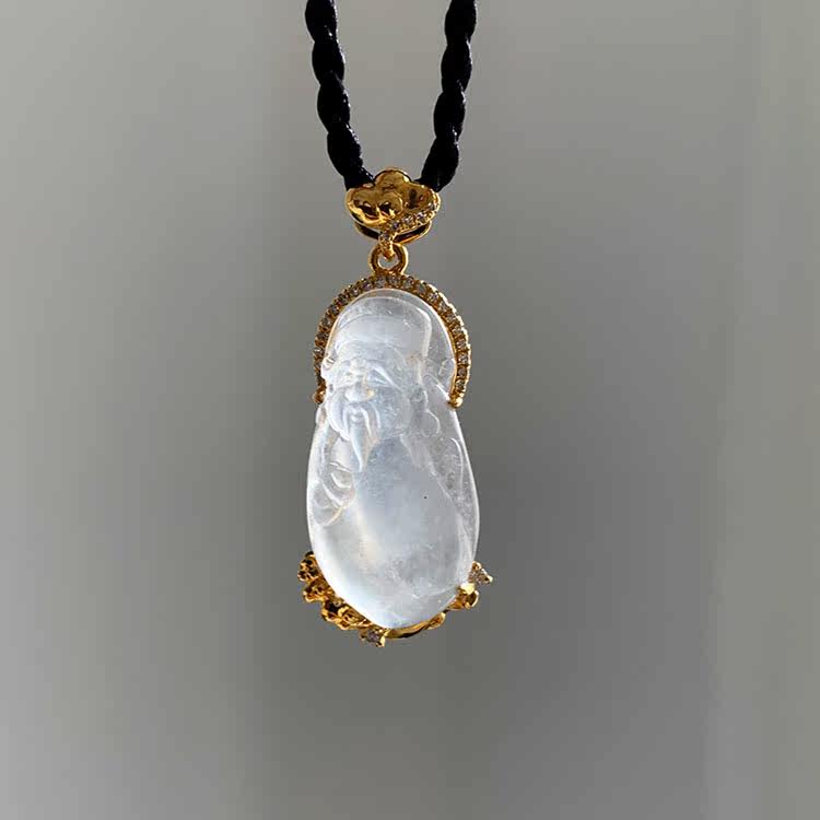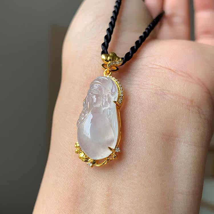 Yiyun Jade Duofuduo Gold High Ice Jade God of Wealth Pendant 18k Gold Inlay Style Reference