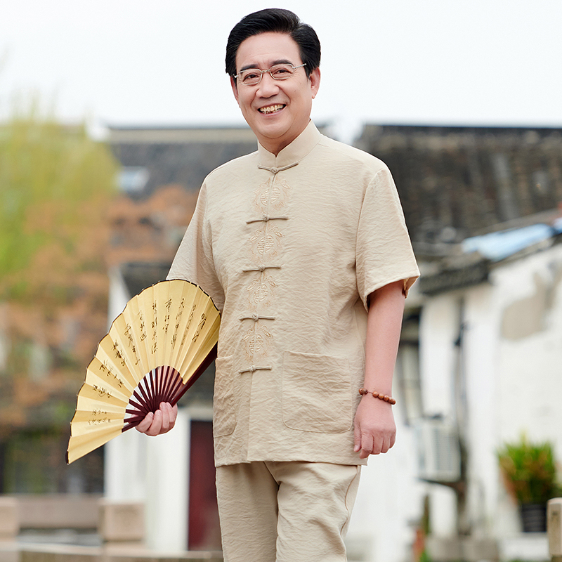 Tang Loaded Men's Middle Aged Grandpa Chinese Style Summer Short Sleeve Suit Loose Dad Casual Standout Collar China Wind Clothes