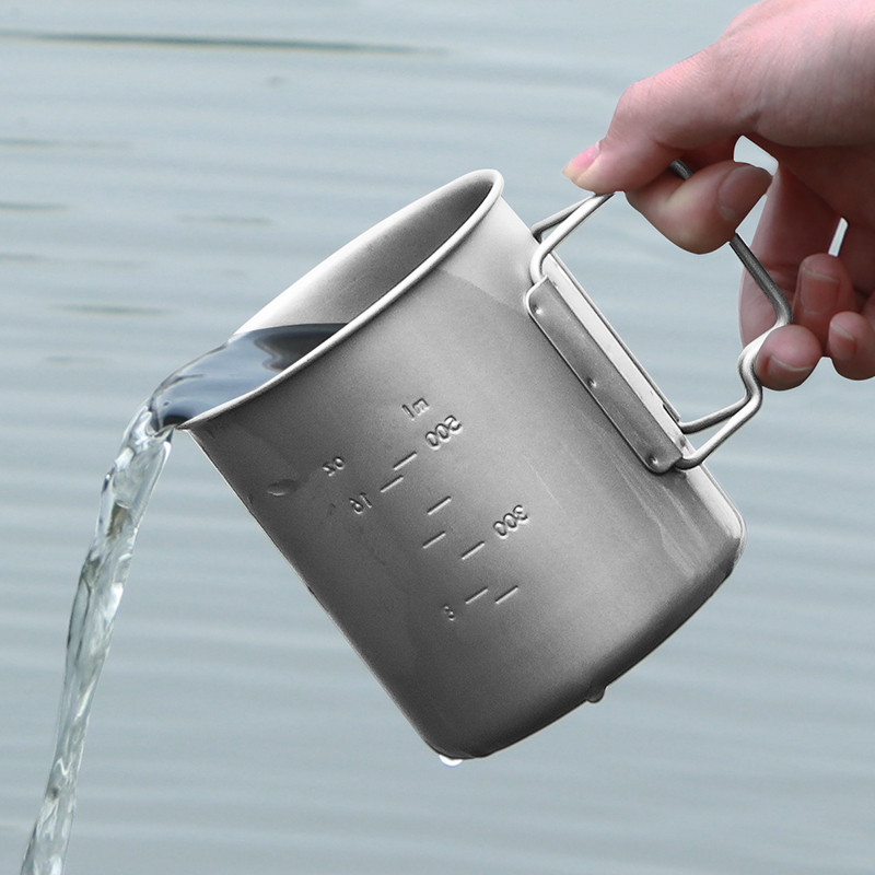 Pure Titanium Water Glasses Folding Cross Country Portable Outdoor Cups Can Burn Water Camping Titanium Cups Large Capacity Tea Cup Mark Cup