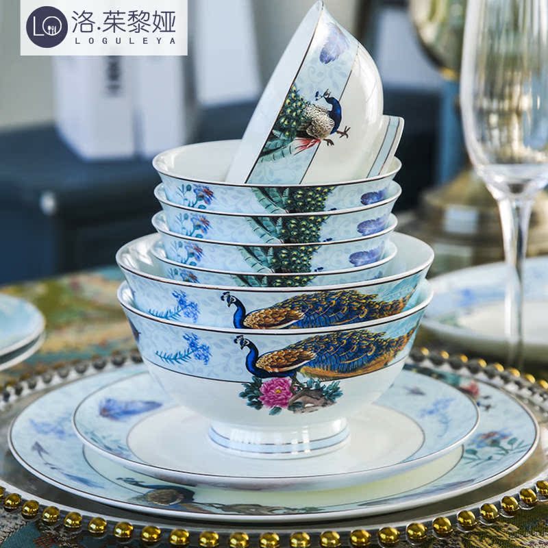 LO GULEYA Jingdezhen Bone China Porcelain Cutlery Dish Suit Home European Style Ceramic Bowl tray Chopsticks Combined Gift