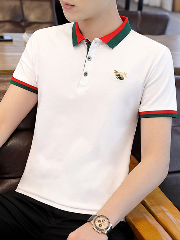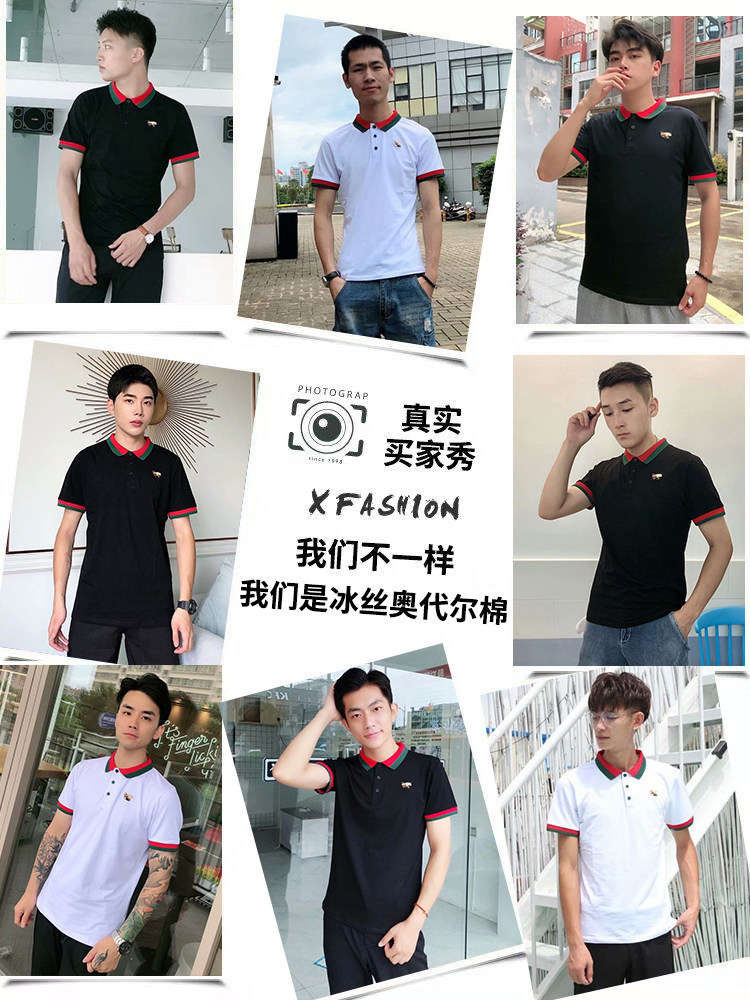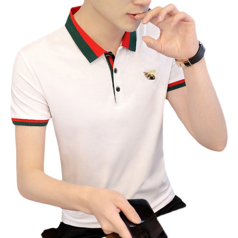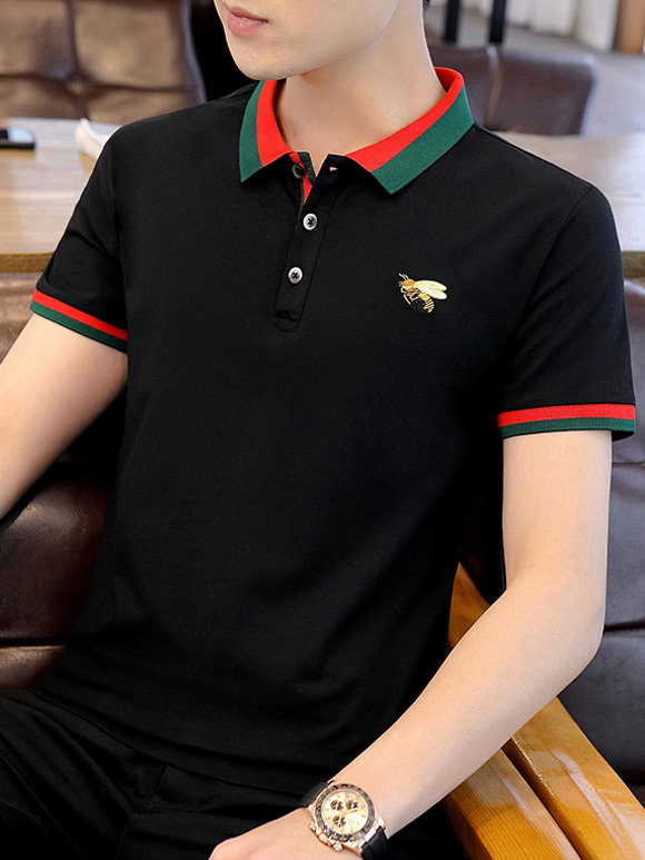 Short-sleeved T-shirt men's summer trend men's lapel Ice Silk bee embroidered T-shirt polo shirt Tide brand ins shirt