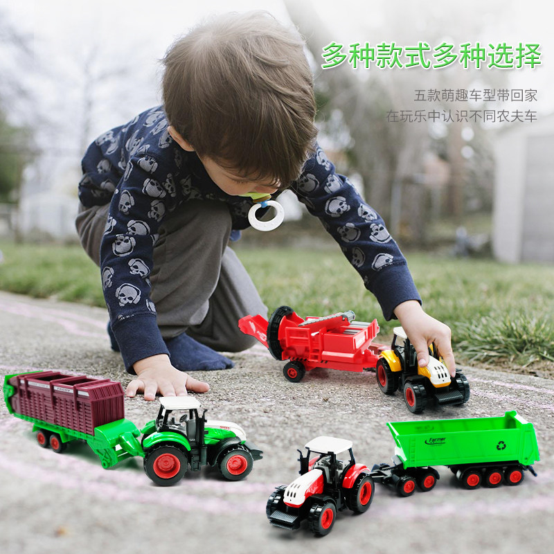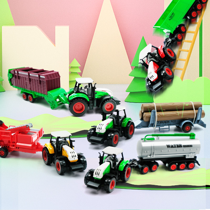 Kids Simulation Farmer Car Alloy Tractor Model Boys Farm Trailer Harvester Transporter PlaySet