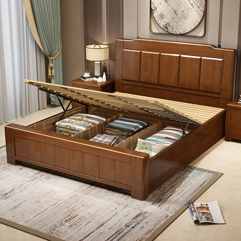 Chinese factory direct sale solid wood 18m big bed master bedroom modern minimalist solid wood 15m single bed wooden furniture