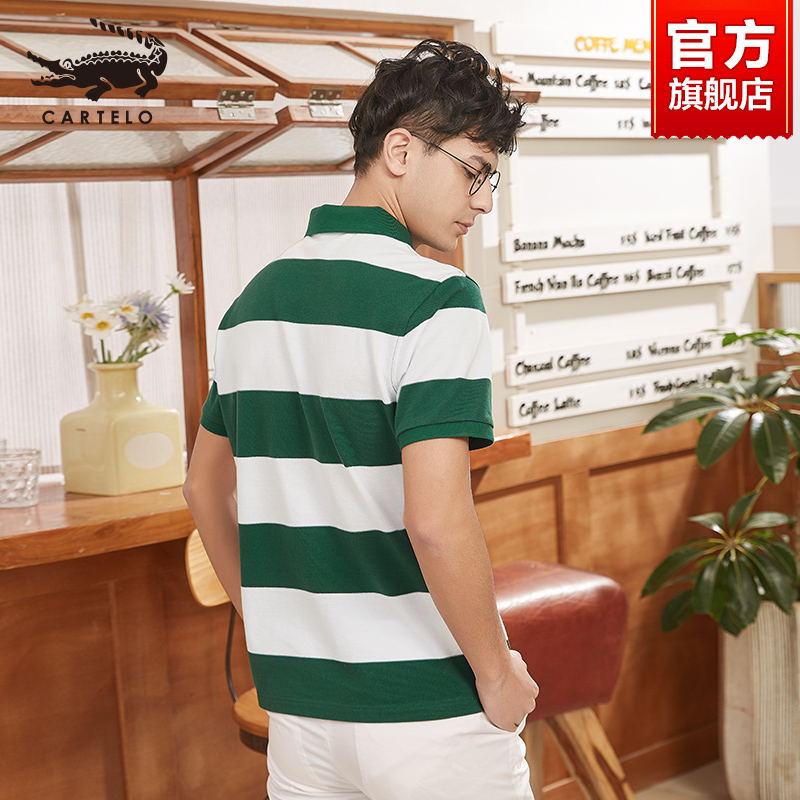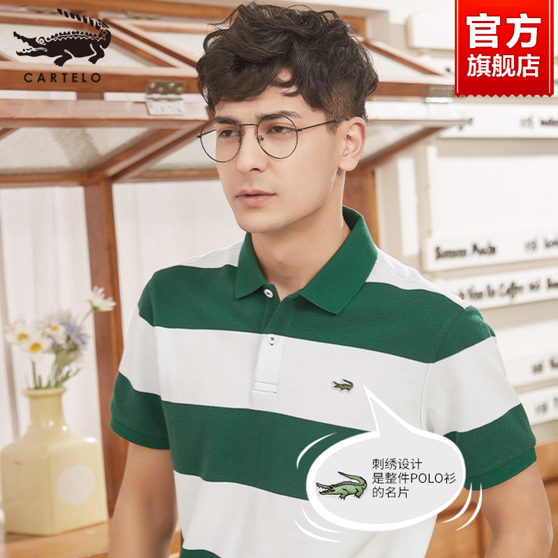 Caravan Crocodile polo shirt male summer short sleeve striped turtlenecks T-shirt Chauded pure cotton casual half sleeve men's clothing