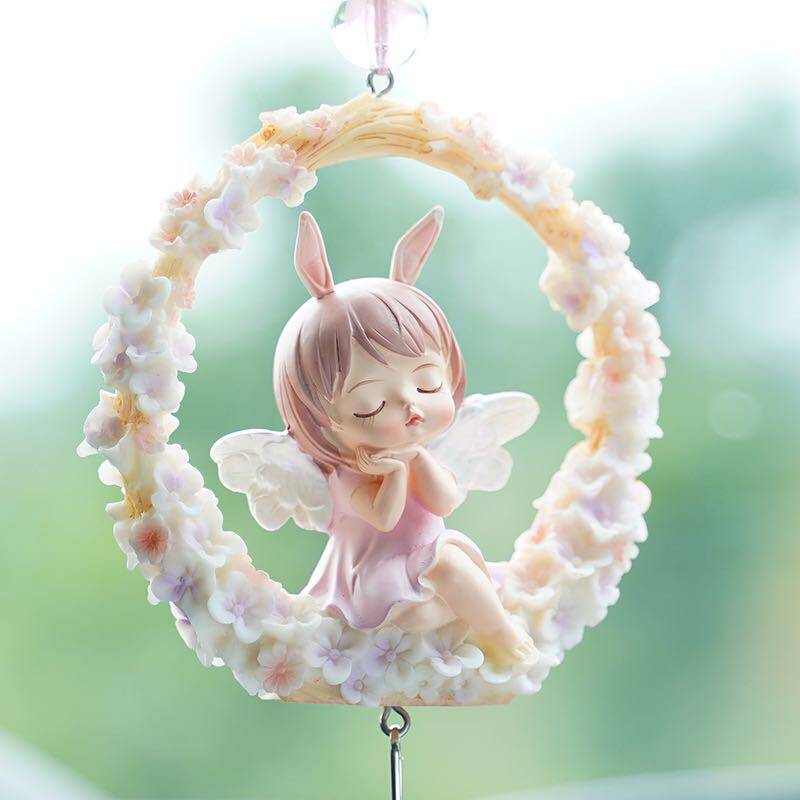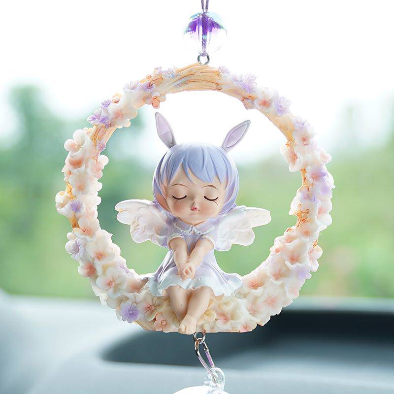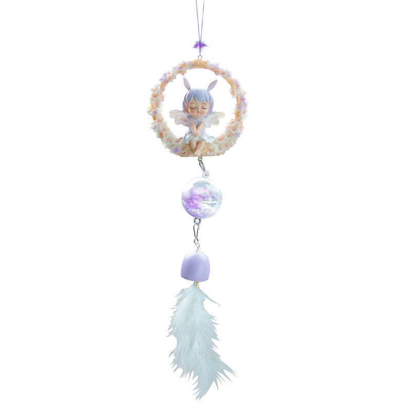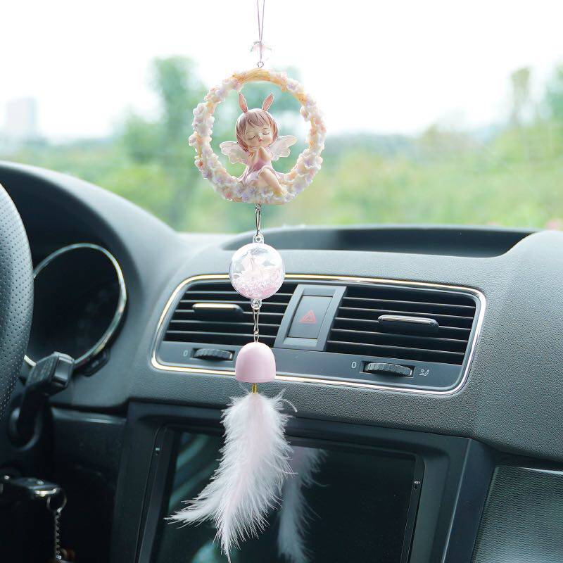 Creative Cute Baby Anne Car Wind Chime Feather Pendant Rear Car Mirror Ornament Car Interior Decoration Supplies Daquan