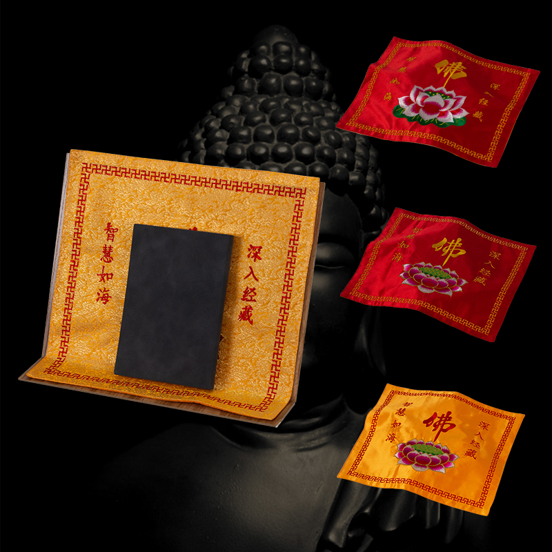 Embroidery warp Wenge via buddhist Eight auspicious lotus flower French wheel double fish swastika home Buddhist sutras via bookshelf Gaib