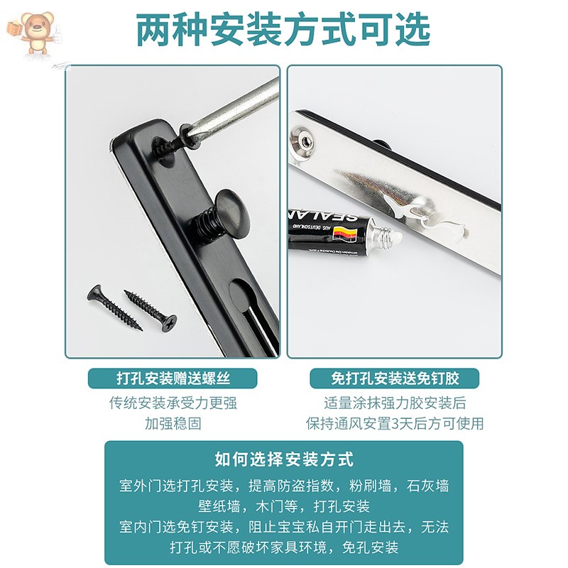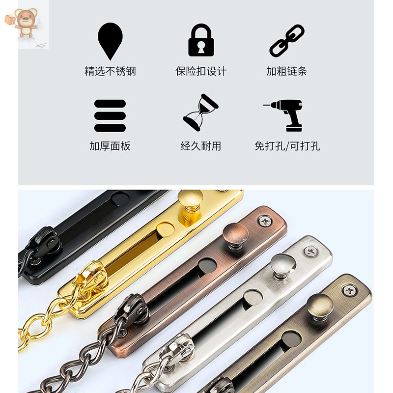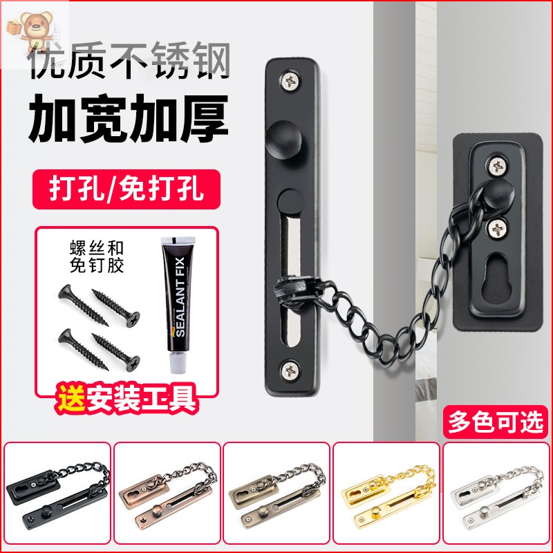 Anti-chain door stainless steel non-punching anti-lock buckle into the door female door snap paste door lock