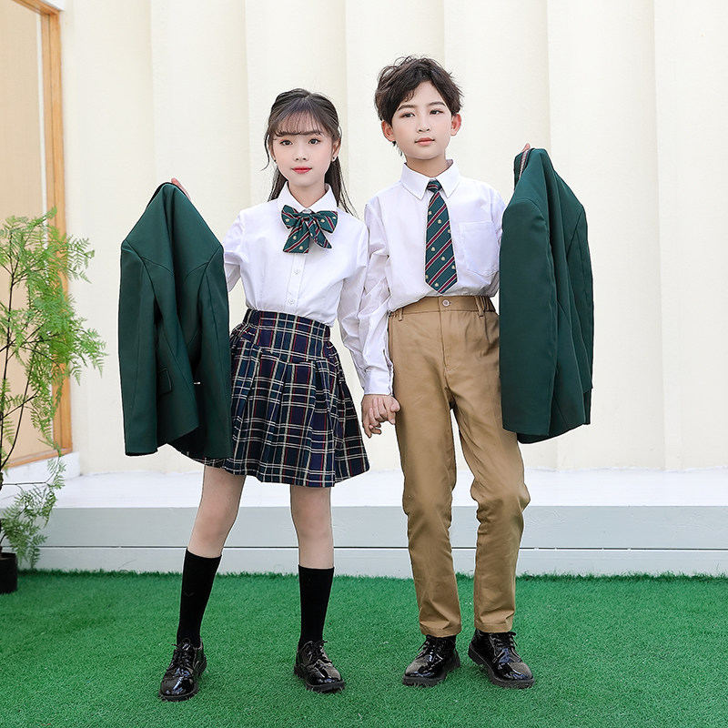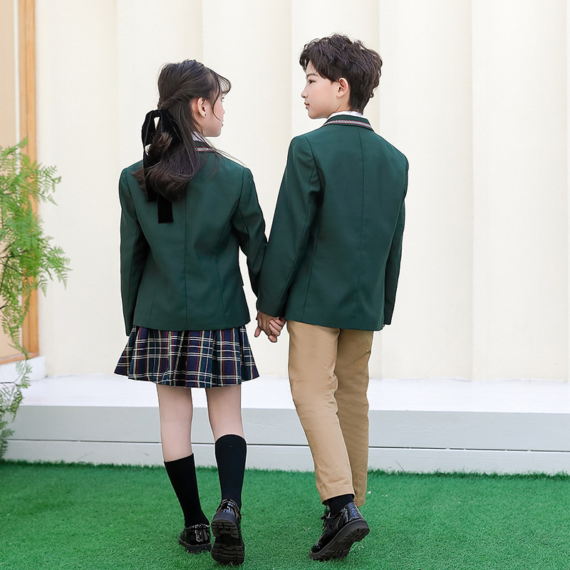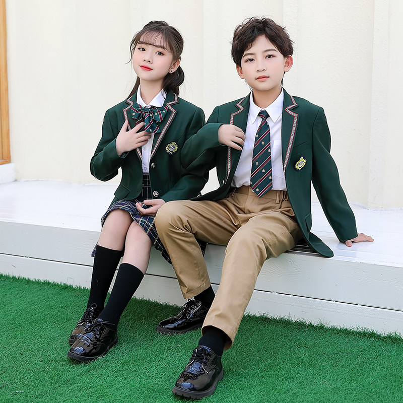 Spring Fall Inn Wind school uniforms three sets of elementary school students one 23 45 sixth grade class uniforms deep green suits