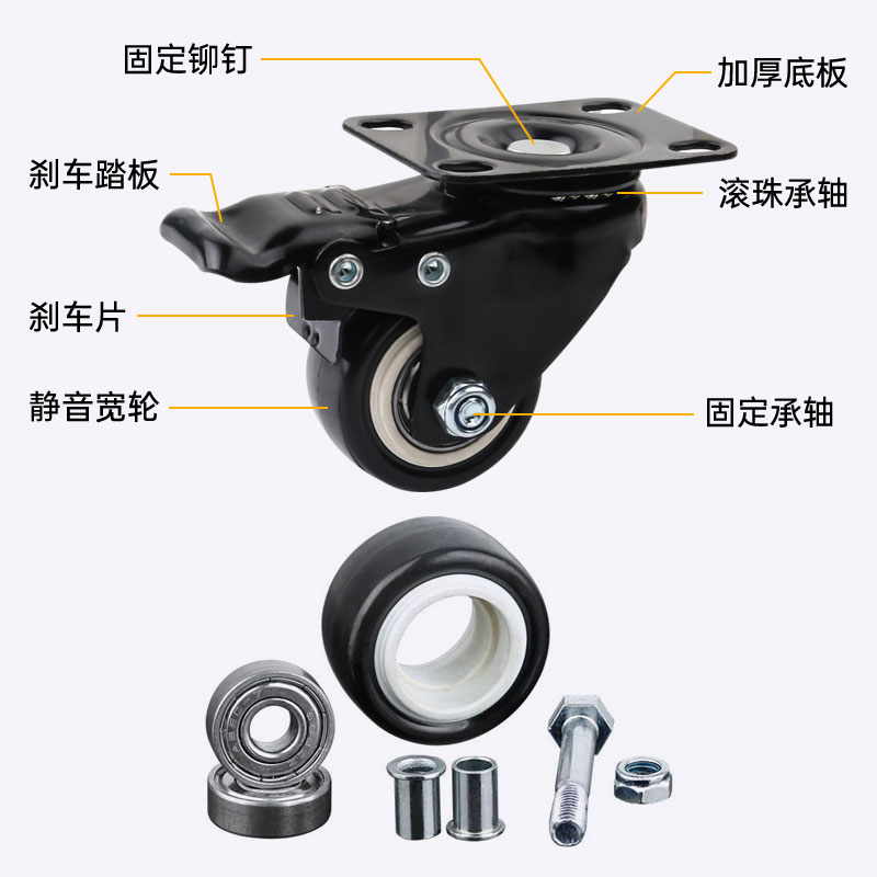 Gold drill universal wheel 2 inch castors load with brake tea table small pulley PU polyurethane orientated flat bottom cabinet wheel-Taobao