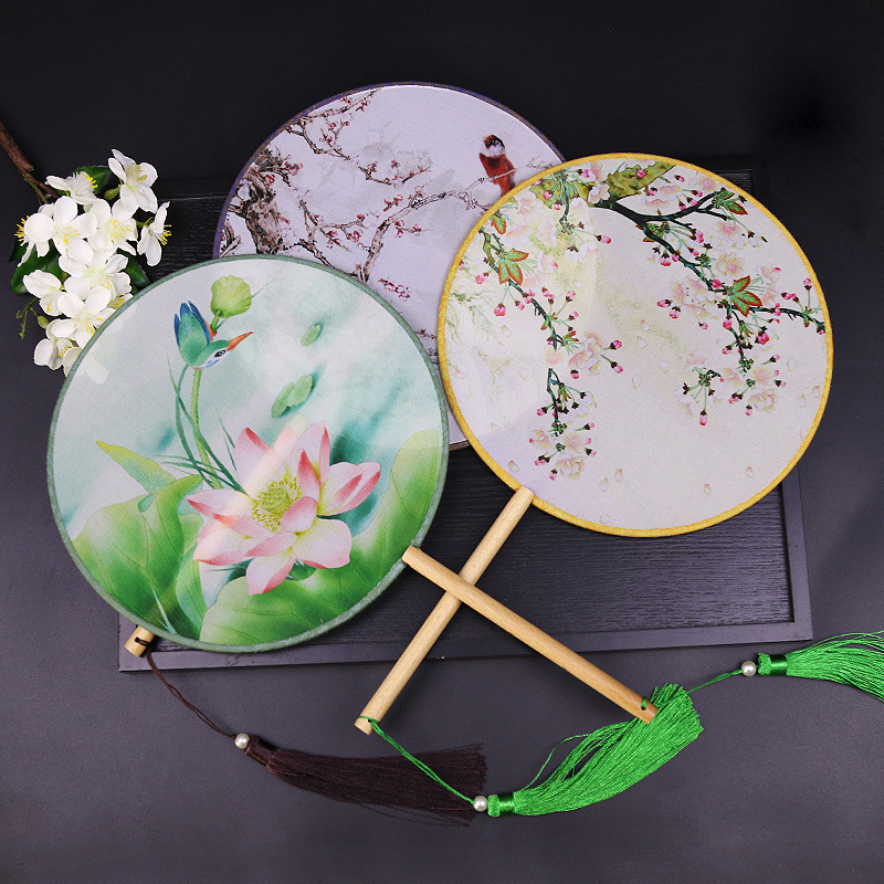 Yiyi Hanfu accessories ancient fan children's Chinese dance fan classical qipao bride costume medium long handle palace fan