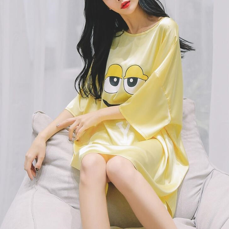 Pregnant woman's pyjamas with long short sleeves T-shirt dress female summer 2021 new net red pops loose and compassionate ice silk sleeping dress-Taobao