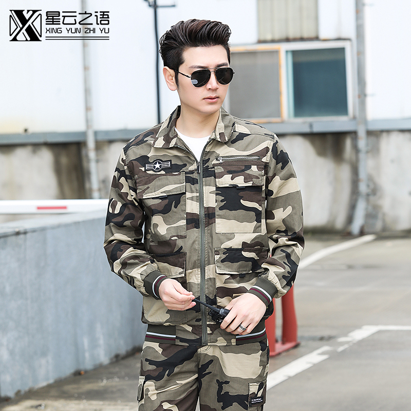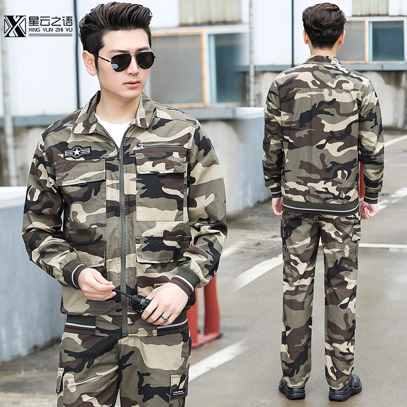 Outdoor wear-resistant military green labor protection clothing camouflage clothing suit men's summer cotton overalls breathable new military fan clothing