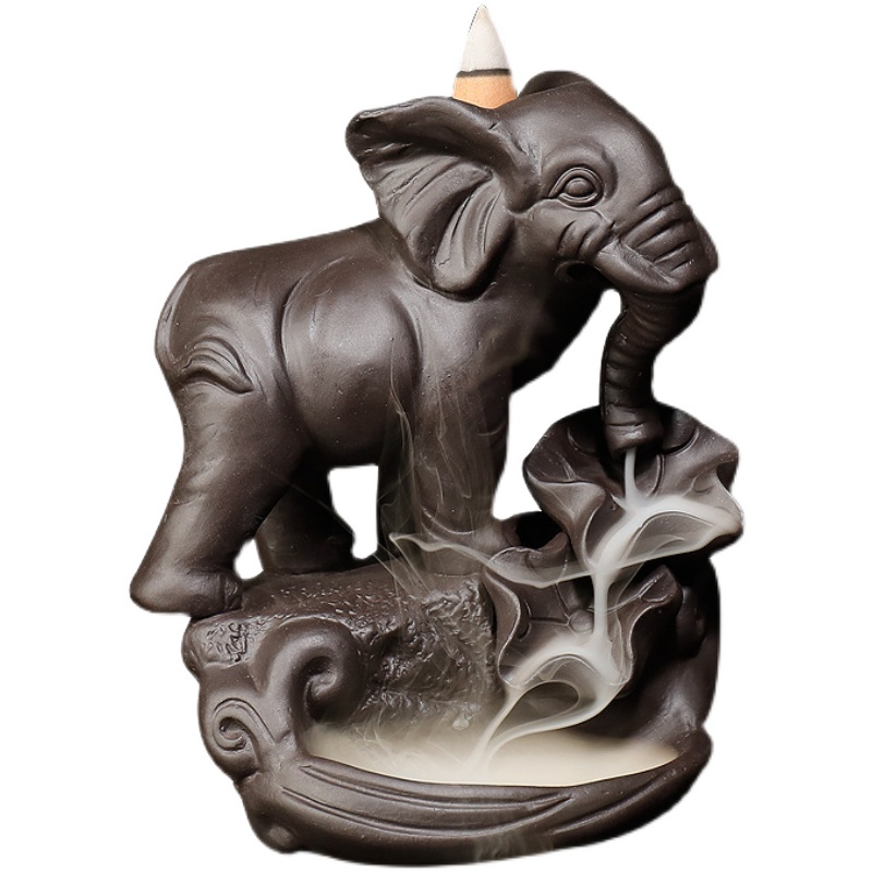Back-turned incense burner Purple Sand Ping An elephant Home Indoor Wanrus Update Creative pendulum Flow Incense Burner to turn back the smoke and make a fortune