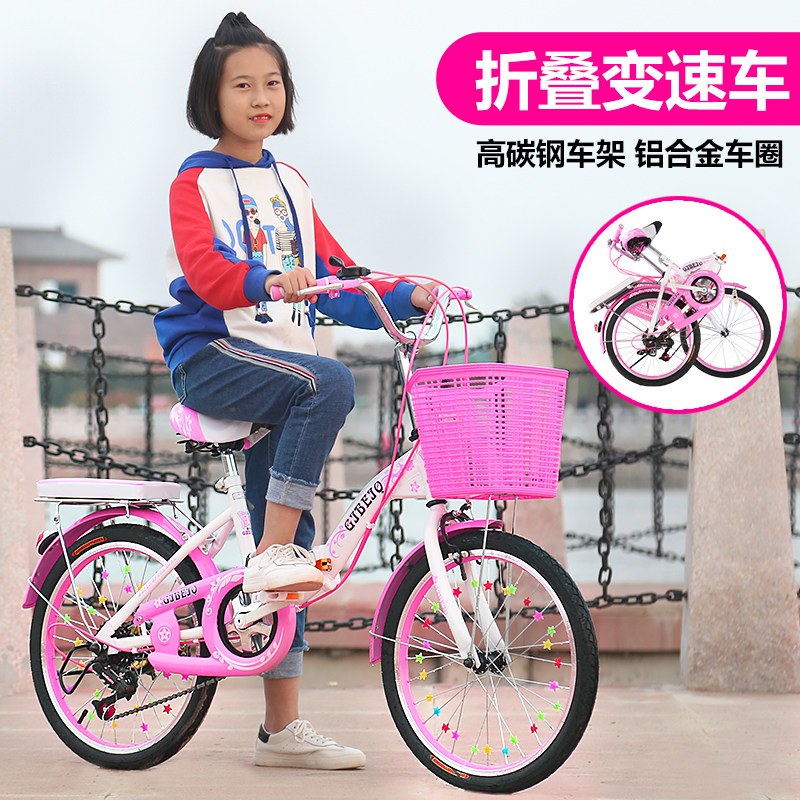 Folding bicycle for big children 20 inches 22 inches light and variable speed princess style ladies girls boys students over 10 years old