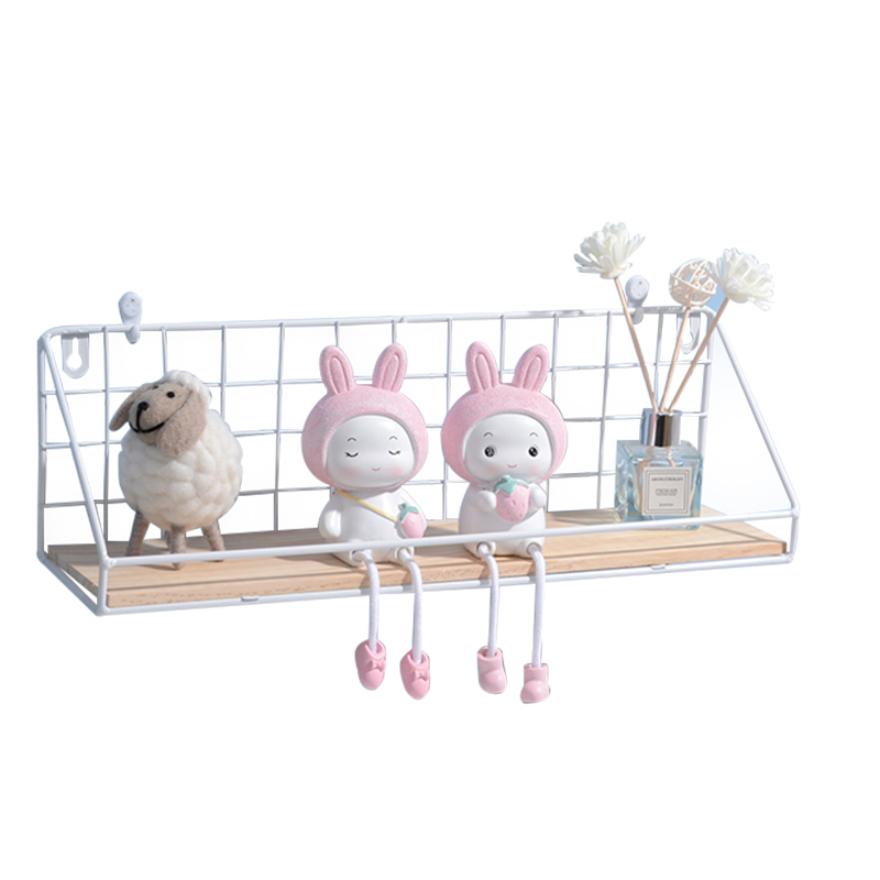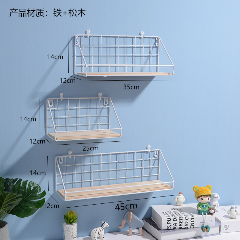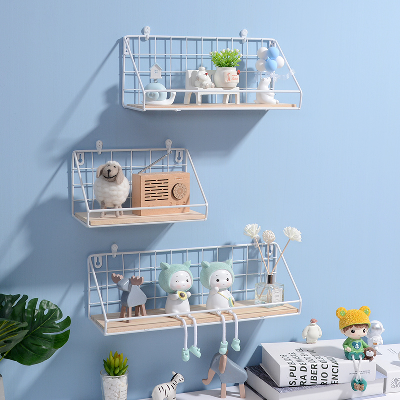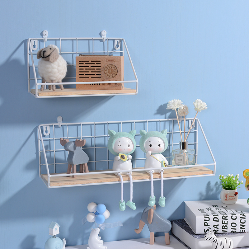 Decorative frame Nordic wrought iron white entry shop dormitory living room wall hanging shelf TV wall decoration wall shelf