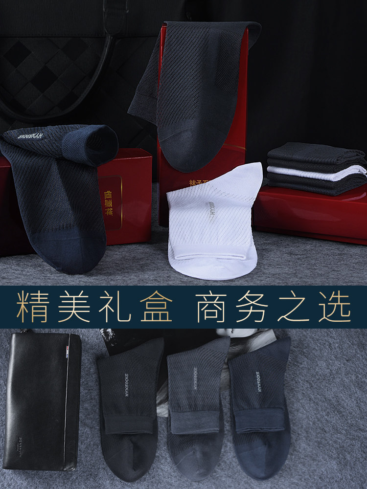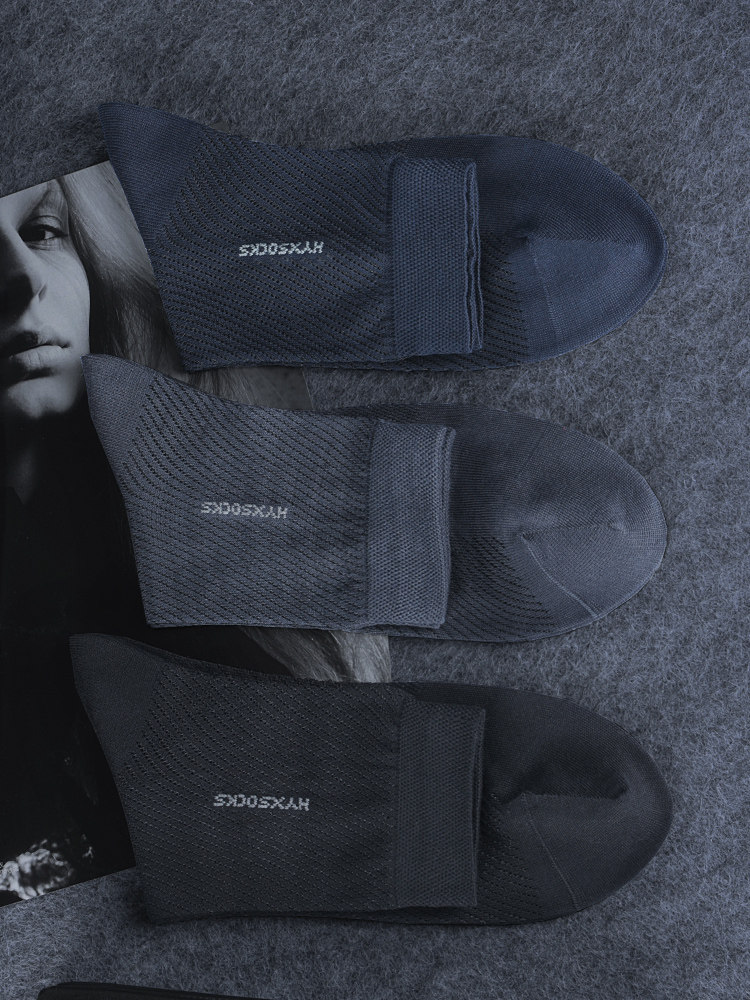 Hengyuanxiang men's ice silk cotton socks spring and autumn thin section light and breathable hollow plus fat size early autumn mercerized cotton socks