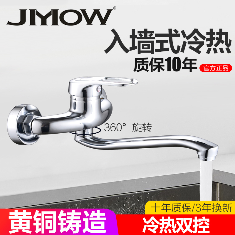 All copper dark mixed water valve kitchen balcony washing pool into wall-type cold and hot faucet wall installed valve household