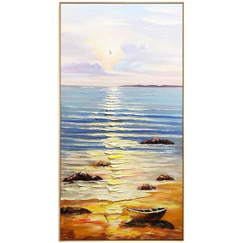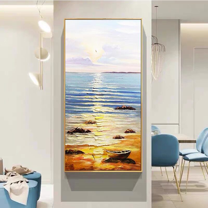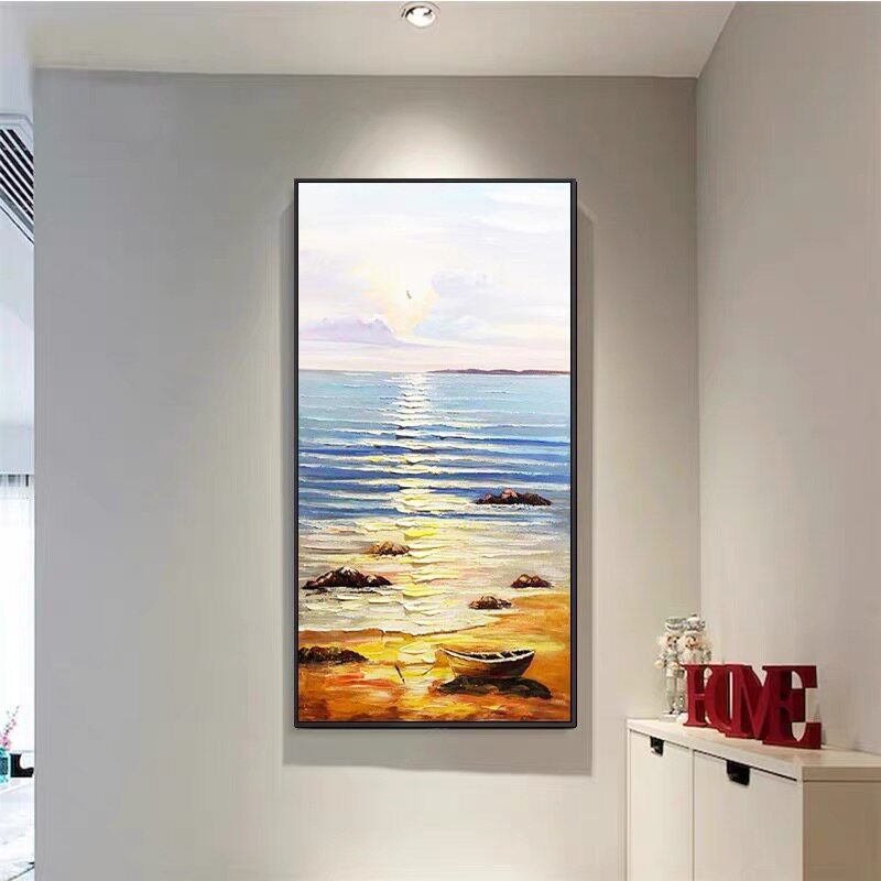 Entrance decorative painting Vertical corridor Sea view sunrise hanging painting Modern simple atmospheric aisle hand-painted abstract oil painting