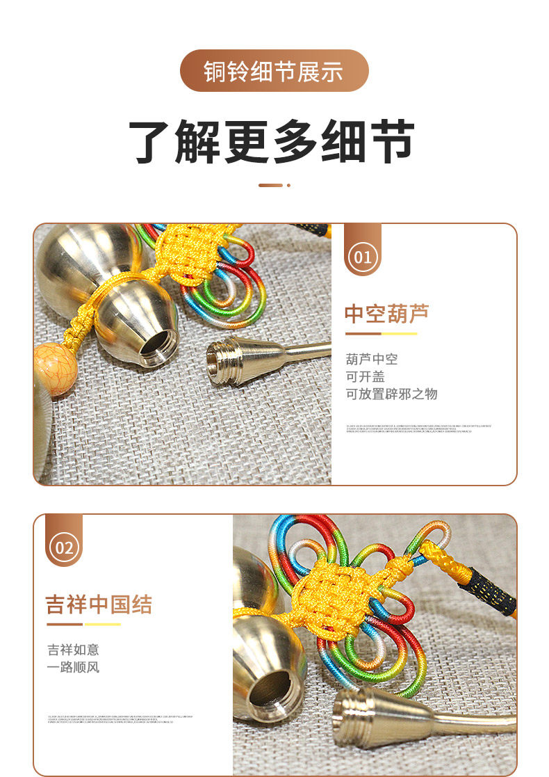 Wudi Qian copper gourd pure copper bell clang Feng Shui wind bell Home car decoration pendant pendant sound crisp and pleasant