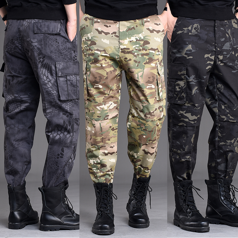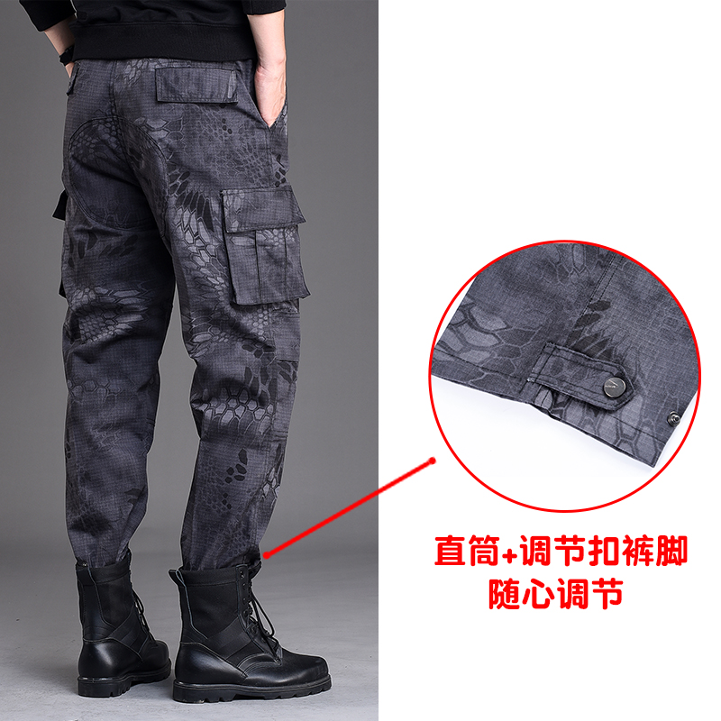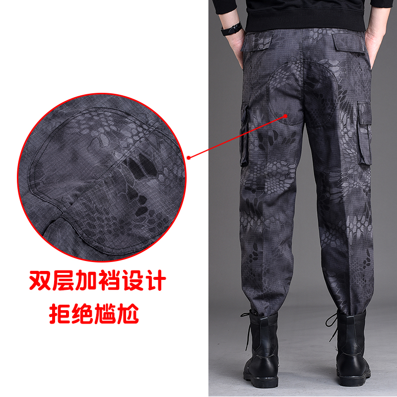 Summer slim fit camouflated workwear pants men's bunches large size straight cylinder loose work fit pants men's labor wear resistant working pants