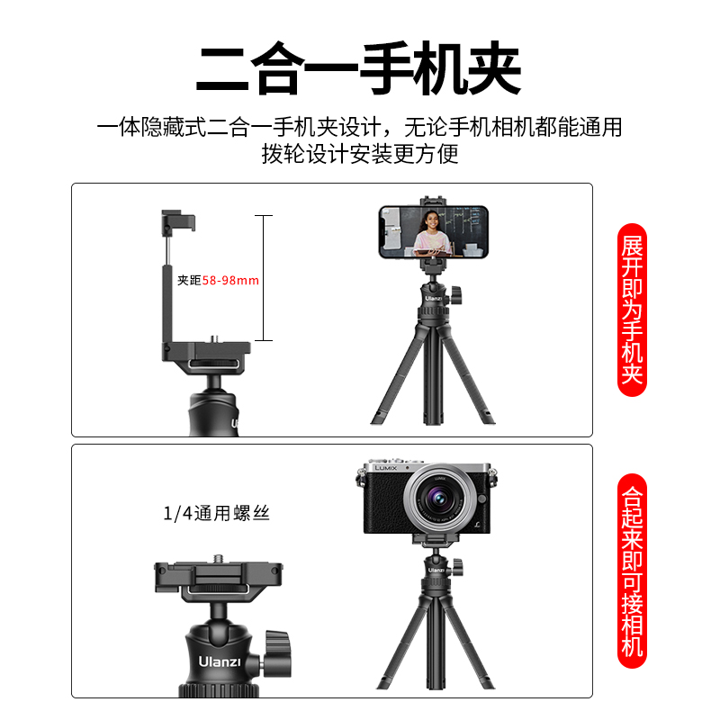 Ulanzi Superior Basket MT-34 Multifunction Tripod Extended mobile phone vlog Live Handheld Self-slapping bar Micro single eye Camera Camera Desktop tripod outdoor shooting Bluetooth Remote control portable