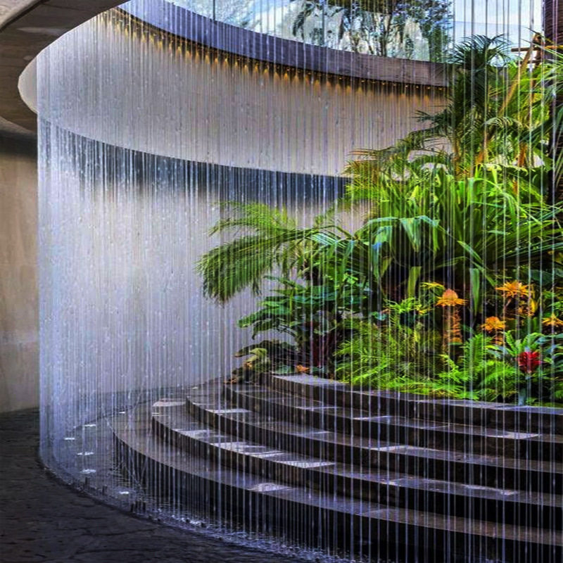 Outdoor wireless water curtain water circulation waterfall landscape light and shadow flowing water fountain intelligent artificial drawing water wall decoration