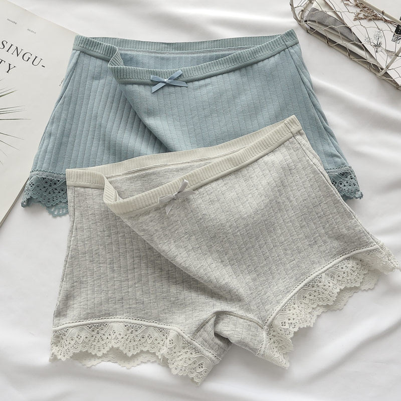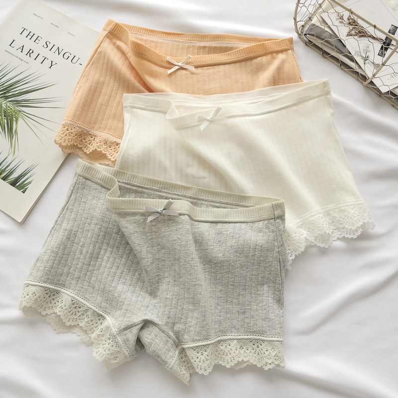 Black and white boxer panties female cotton boxer lace girls student safety pants anti-light two-in-one summer