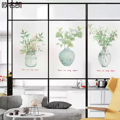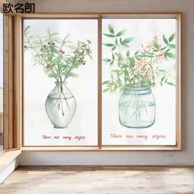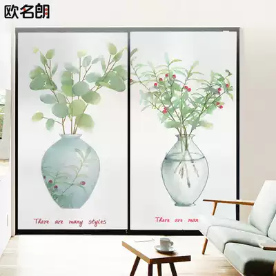 Nordic glue-free electrostatic window glass film anti-peep balcony powder room moving door shading window paper leaves plant