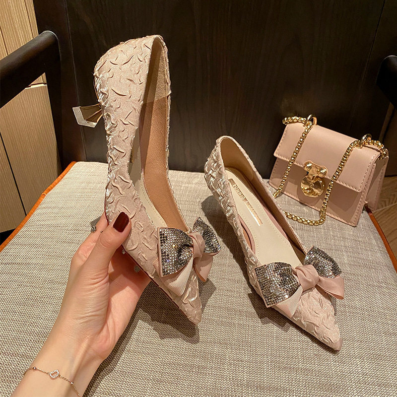 Gulvdinel sequin bow high heels women's new comfortable soft rebound ~ pointed pumps ~ - Taobao