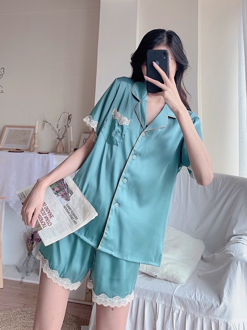 Grey Lace Short Sleeve Shorts Suit Blue Green Lace Short Sleeve Shorts Suit