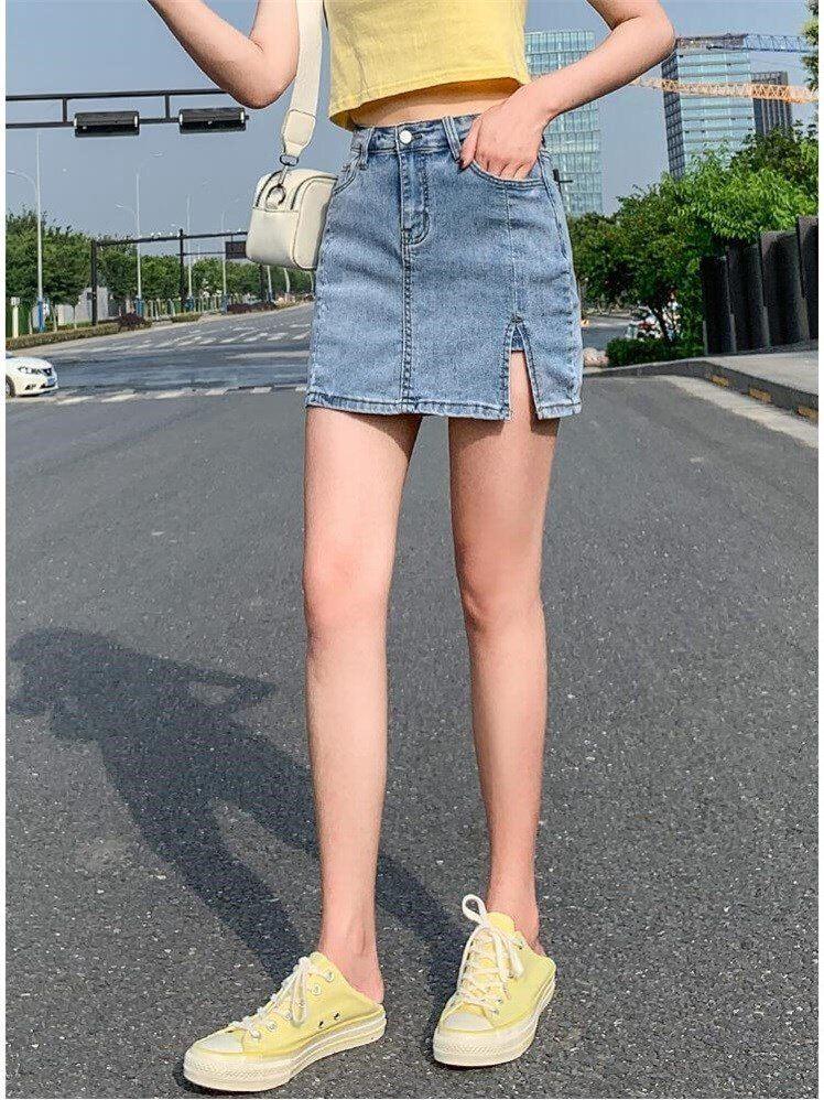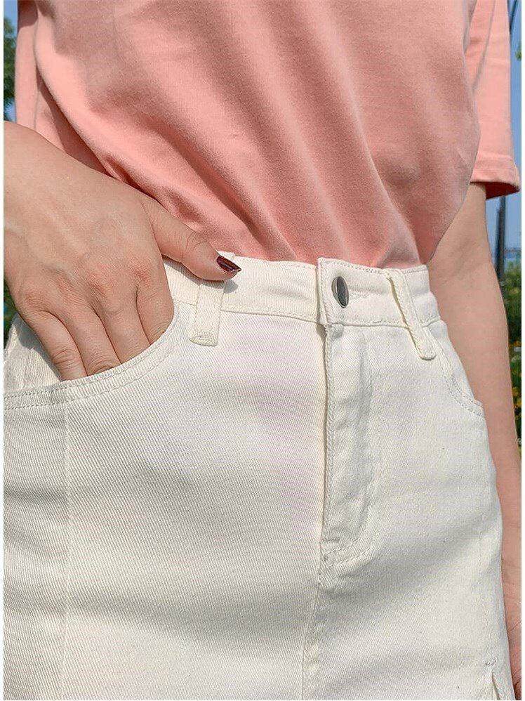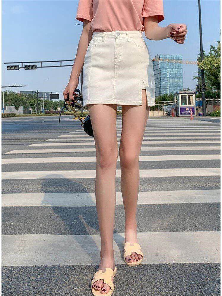 Open Fork Denim Dress White Woman Short Dress Pants Dress 2022 Summer New Ins Tide Pack Hip Half Body Skirt High Waist A Character Dress