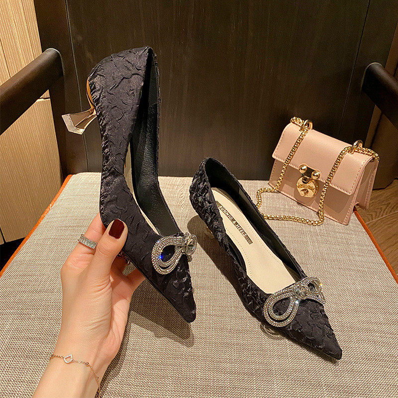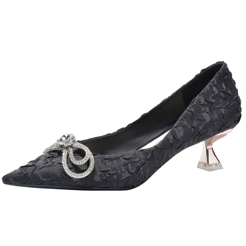 Gulvdinel elegant and simple ~ ~ celebrity high heels women's new fashionable bow generous pointed toe shallow single shoe