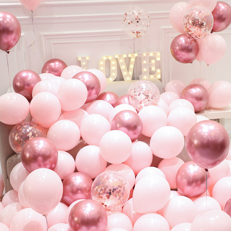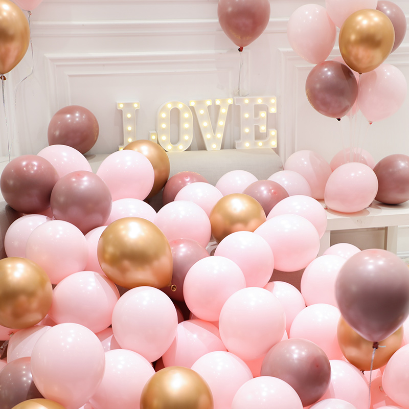 Wedding retro pink balloon decoration romantic wedding birthday party scene layout wedding room net red balloon thickening