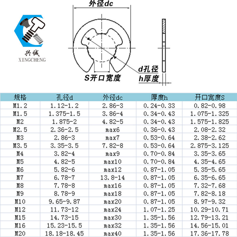 304 stainless steel opening retaining ring E-type clamp spring pneumatic wind batch snap ring gasket M1 5M2M3M4M5M6M8M15