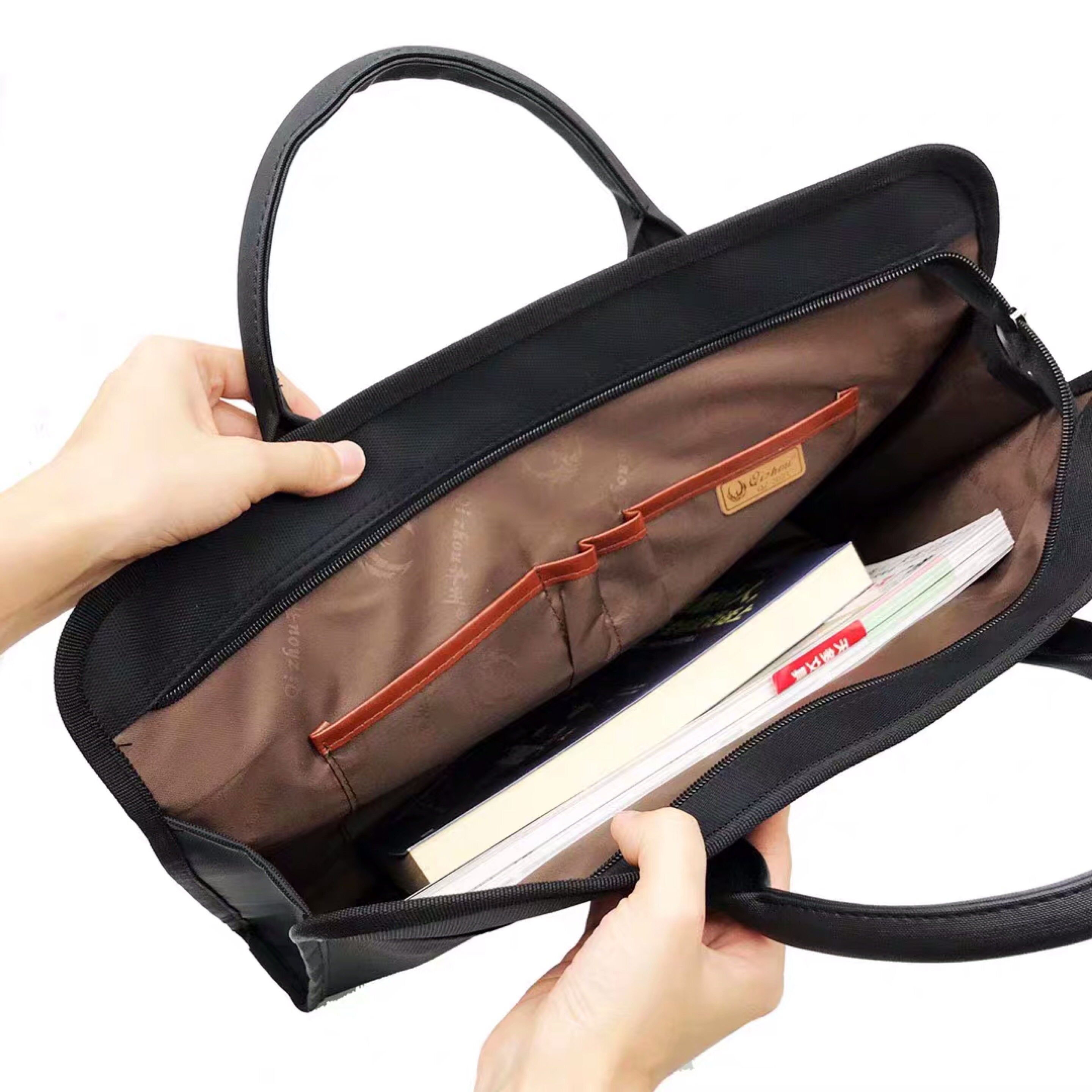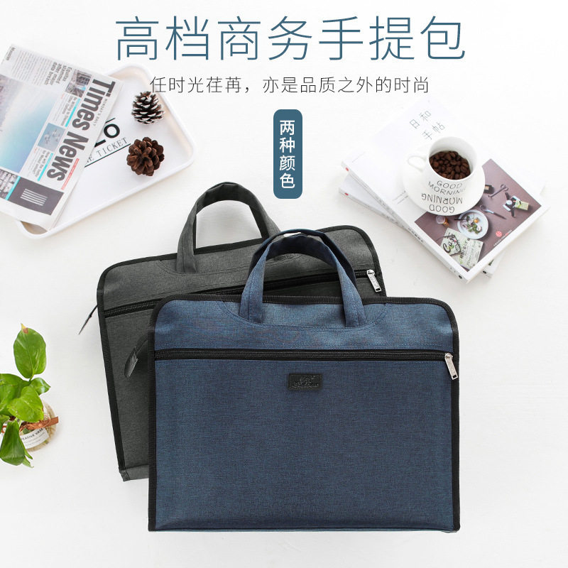 Qizhou briefcase training documents bag meeting handbag large capacity a4 canvas bag can be customized to print logo