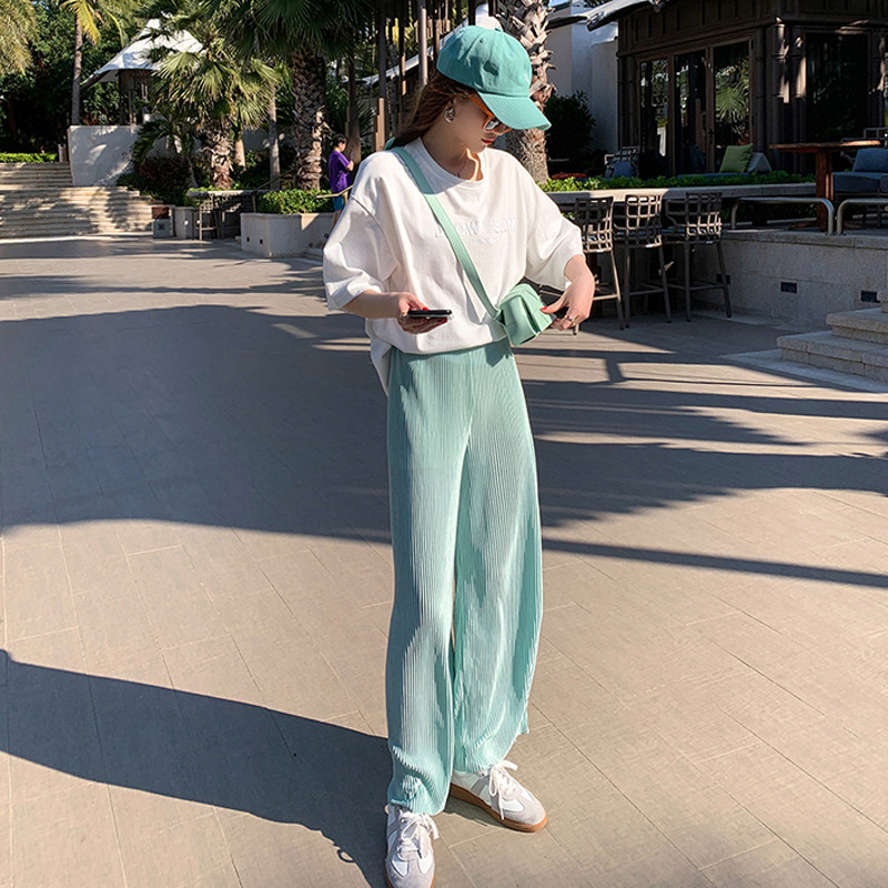 New pregnant woman in spring and summer lap pants high waist crash trousers, pants wide cigarette tube casual pants