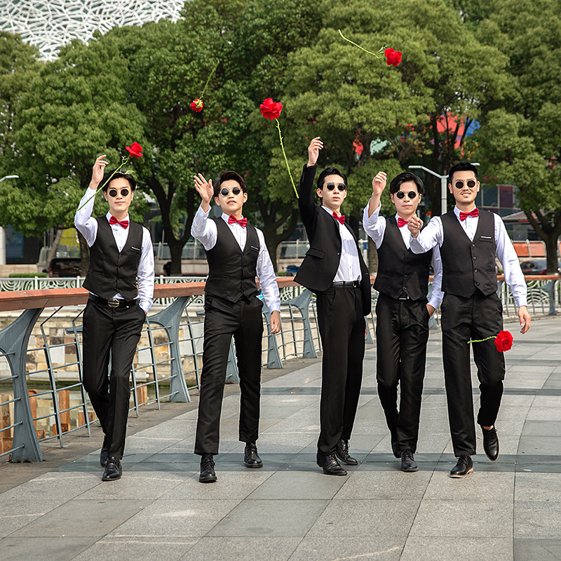 White long-sleeved shirt (with bow tie) default wine red bow tie Single short-sleeved shirt Gray vest Black vest Gray vest Shirt Gray pants (with bow tie) Baby bag Shirt