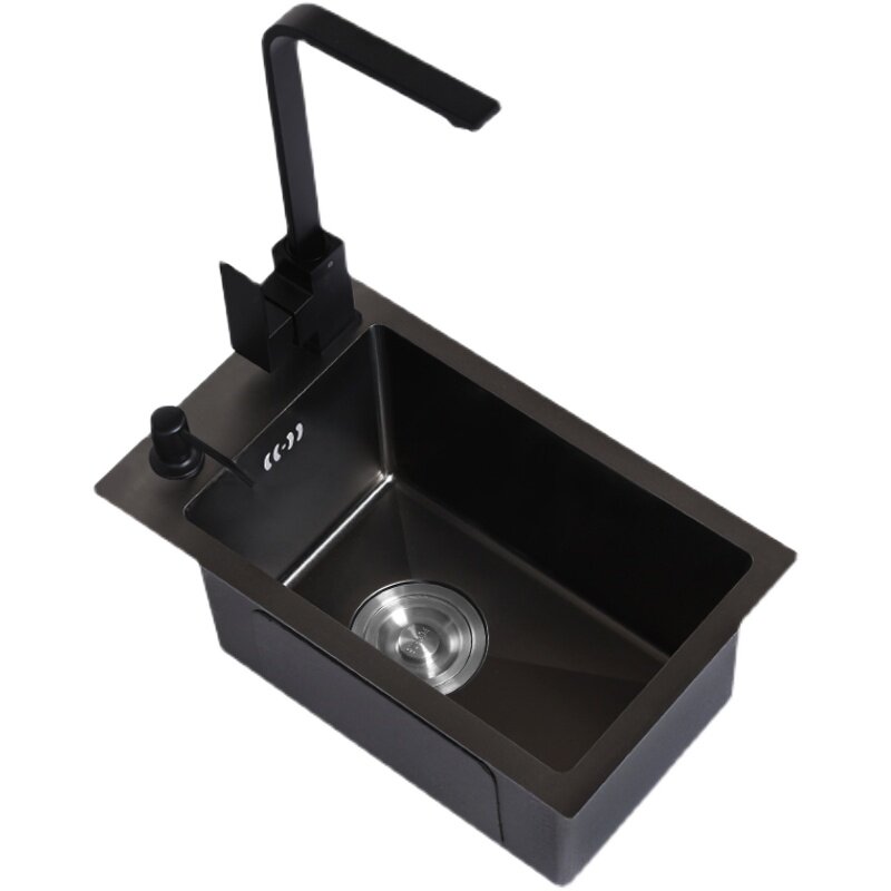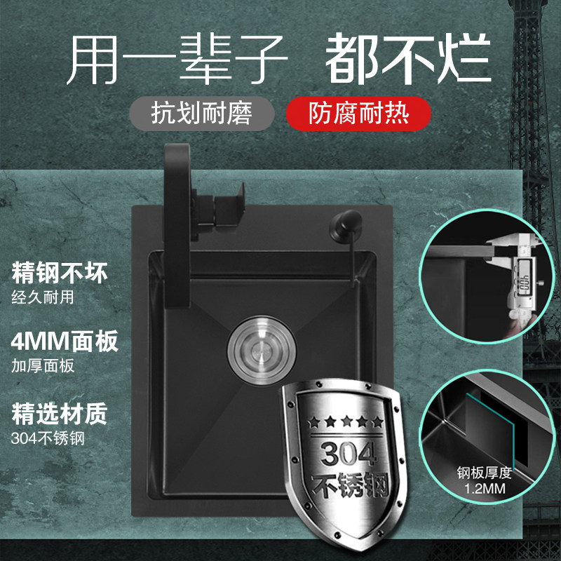 Black nano 304 stainless steel handmade sink large single sink kitchen side balcony bar narrow and long type vegetable basin