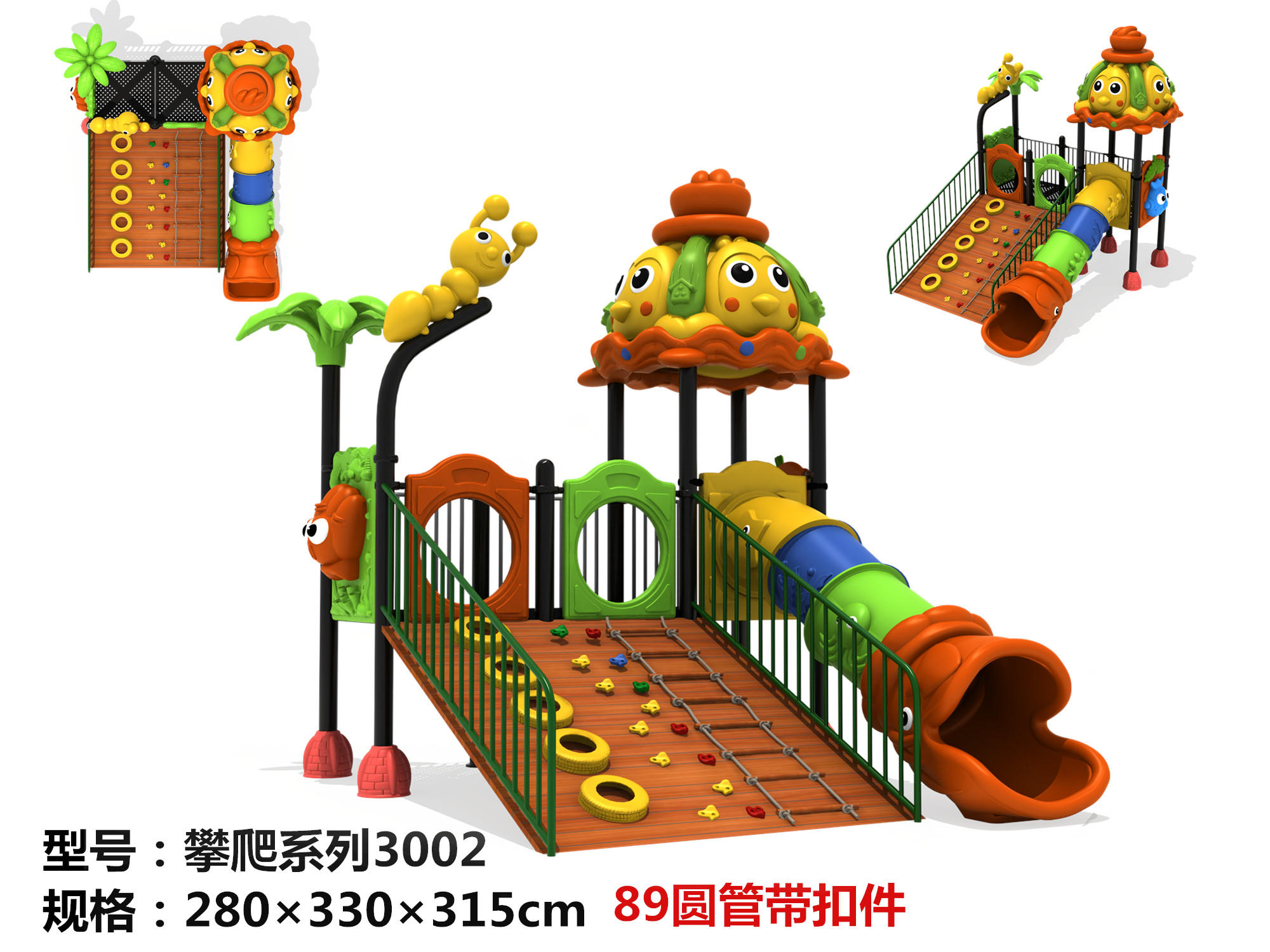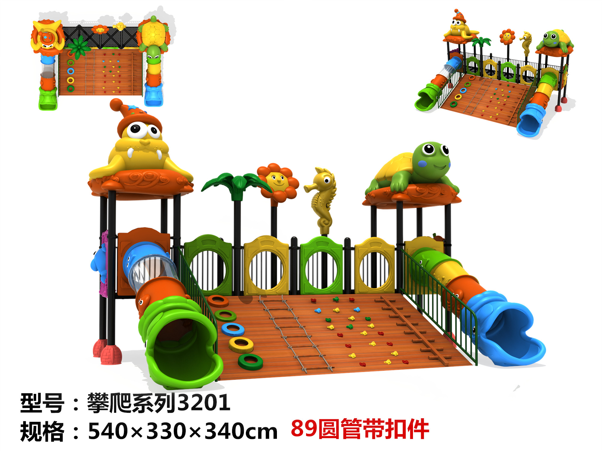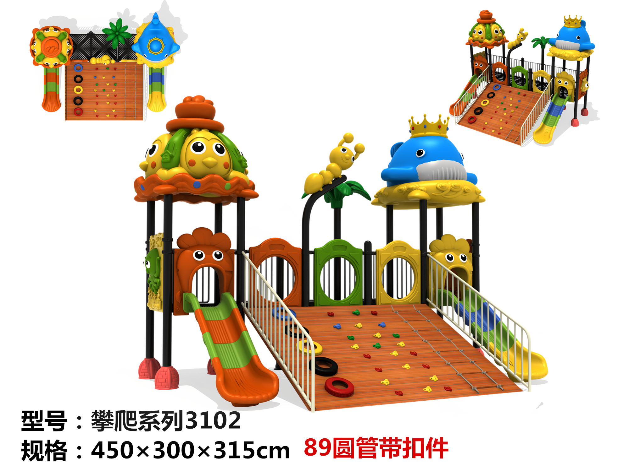 Kindergarten indoor and outdoor wooden climbing wall climbing mesh large slide-sized slide combination outdoor amusement equipment