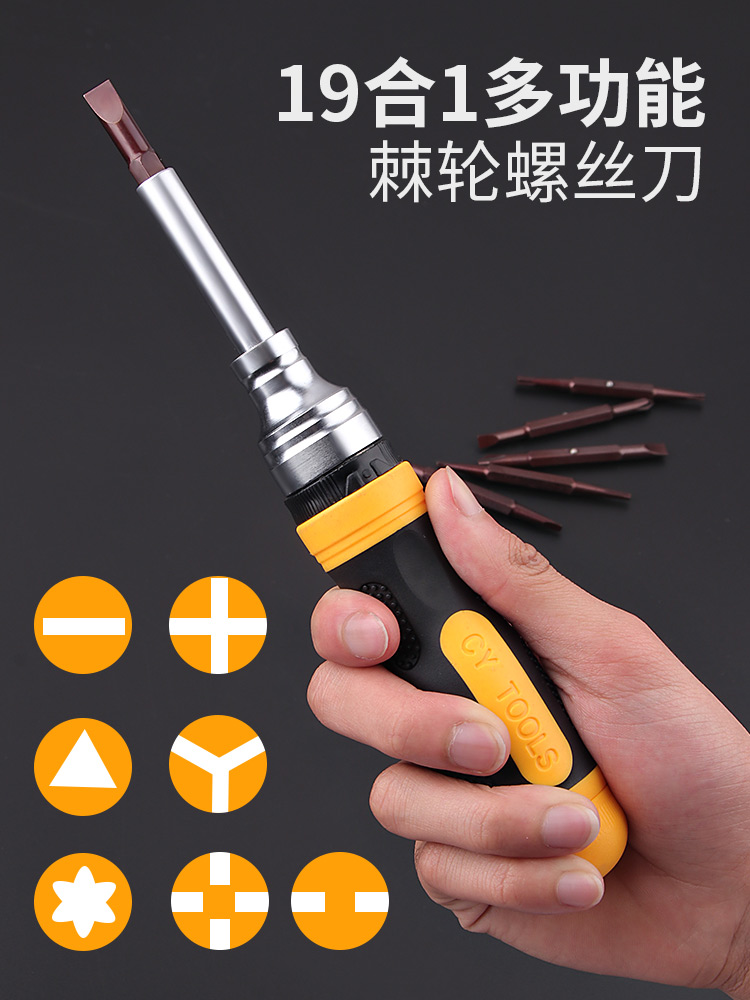 19-in-1 multifunctional ratchet screwdriver set cross-figure triangle plum blossom shaped universal screwdriver changer cone