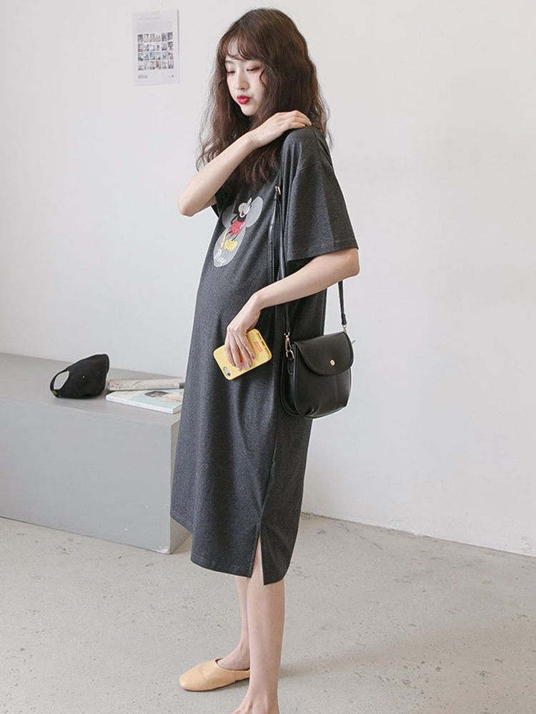 Pregnant Woman Summer Dress Ocean Dress 2022 New Fashion Loose Slim Veil Cartoon Mid-Summer T-shirt Spicy Mother