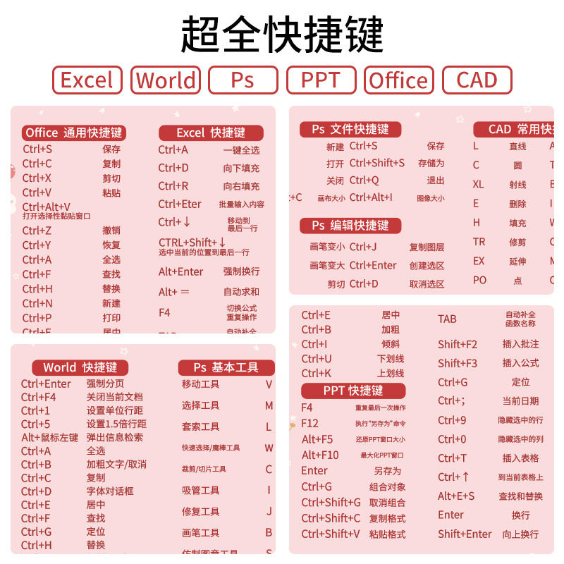 Oversized mouse pad thick cute small pad hand wrist pad desk mat plus ps shortcut poster office software laptop keyboard pad for boys and girls learning table mat
