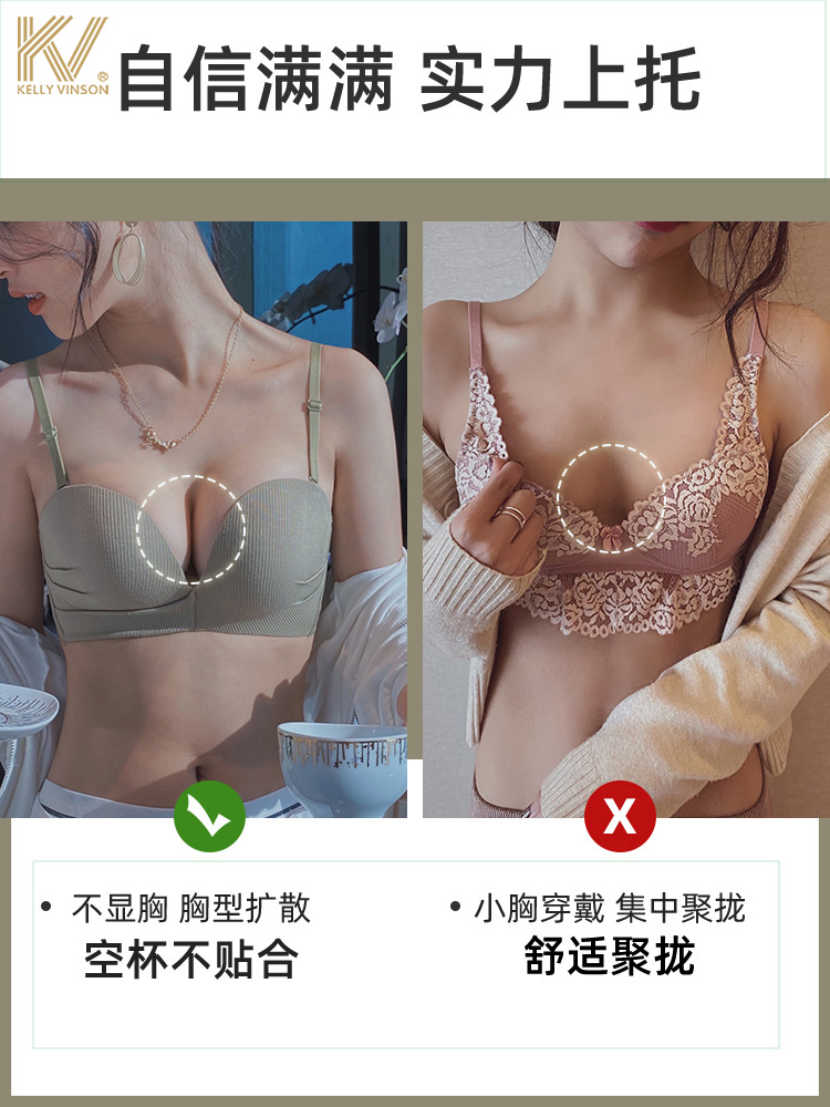 No-mark underwear Female small breasts for large gathering of bra thin and anti-outward expansion of auxiliary milk adjustment type upper-care underwear suit