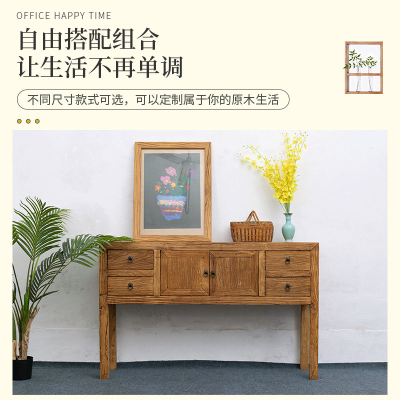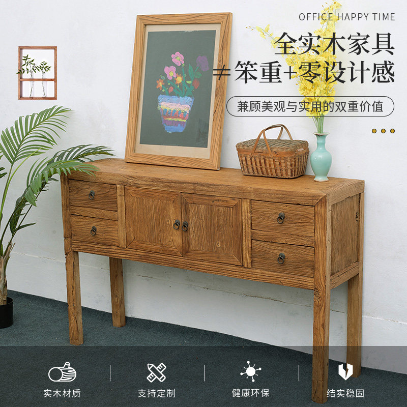 Solid wood porch cabinet old elm mortise tenon log made old weathered retro furniture integrated into household simple Chinese drawer