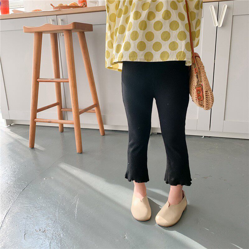 Girl Pants Summer Children Outside Wearing Thin section 90% Pants Spring Autumn Tight Body Horn Pants Pure Cotton Black Microlaid Pants