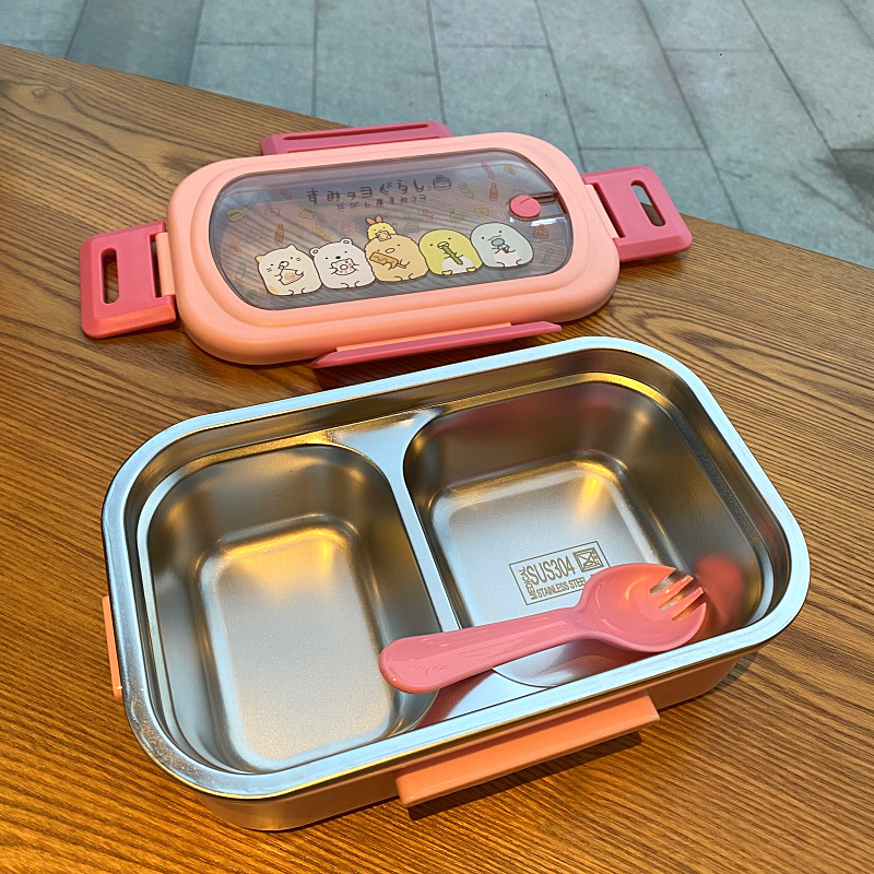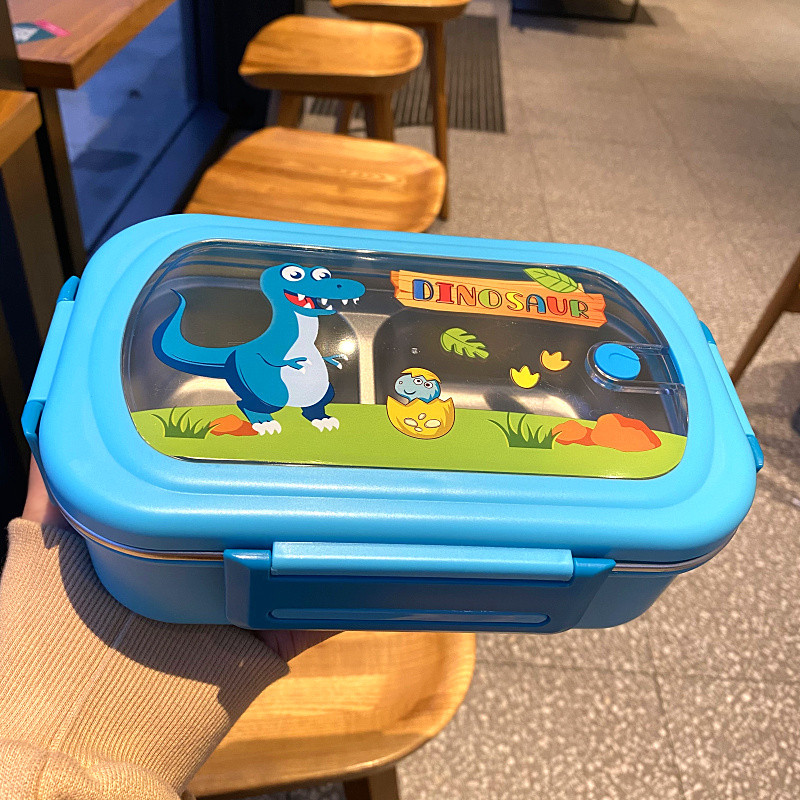 Cartoon 304 stainless steel partition plate student children's lunch box canteen Bento Box anti-scalding cutlery box fruit box